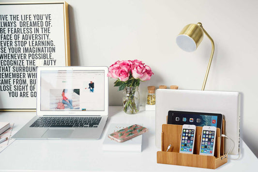 Laptop Stand and Organizer with Built-In Power Hub and Dry Erase Board