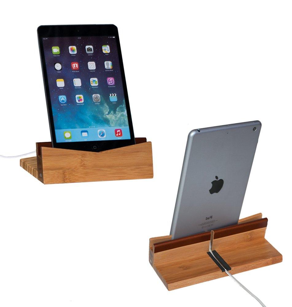 - Bamboo Tablet Dock: 3.5" W x 7" D x 2" H. Designed to fit iPads and tablets with or without thin cases. Universal Compatibility - iPad Pro 9.7, 10.5, 12.9, Air Mini 4 3 2, Kindle, Nexus, and Tablets and E-Readers (4-13’’).