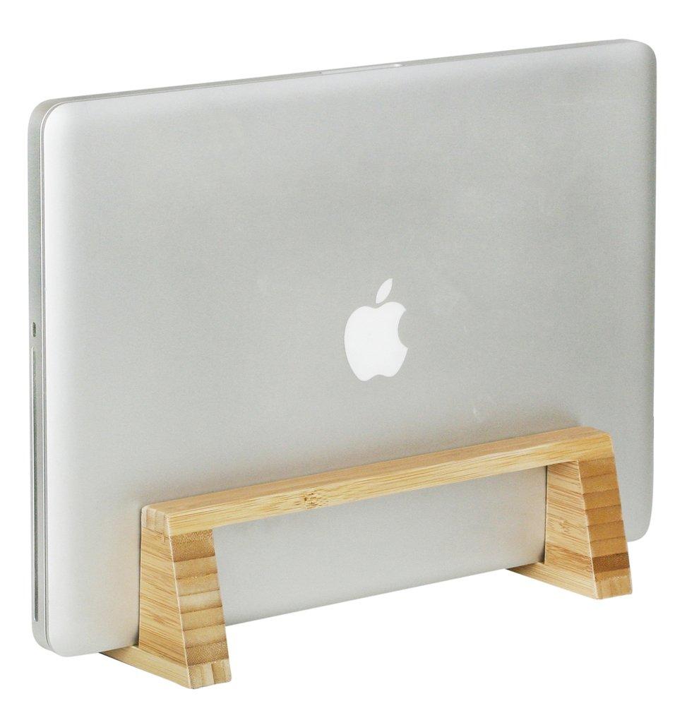 - Bamboo Laptop Dock: 4" W x 10.5" D x 3" H. Our dock comes with foam liners that adjust the width of the dock to fit almost any laptop with a snug fit.