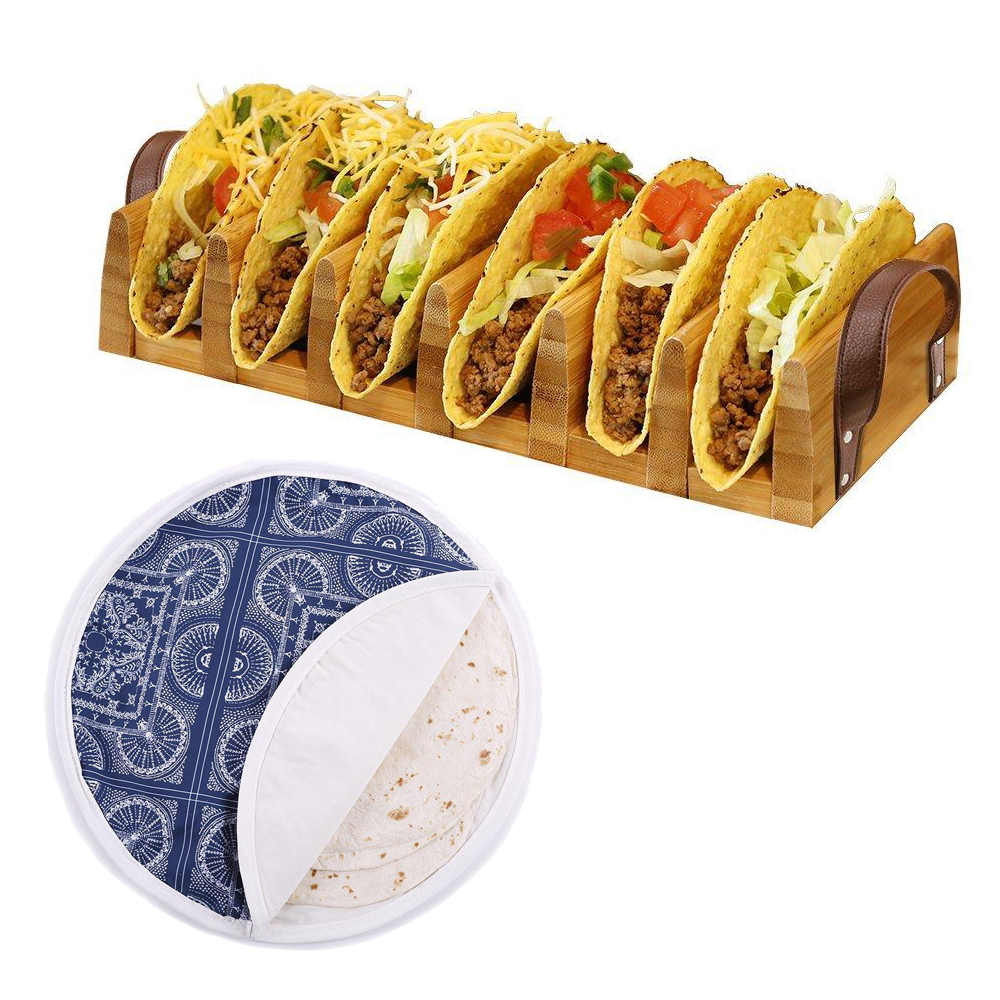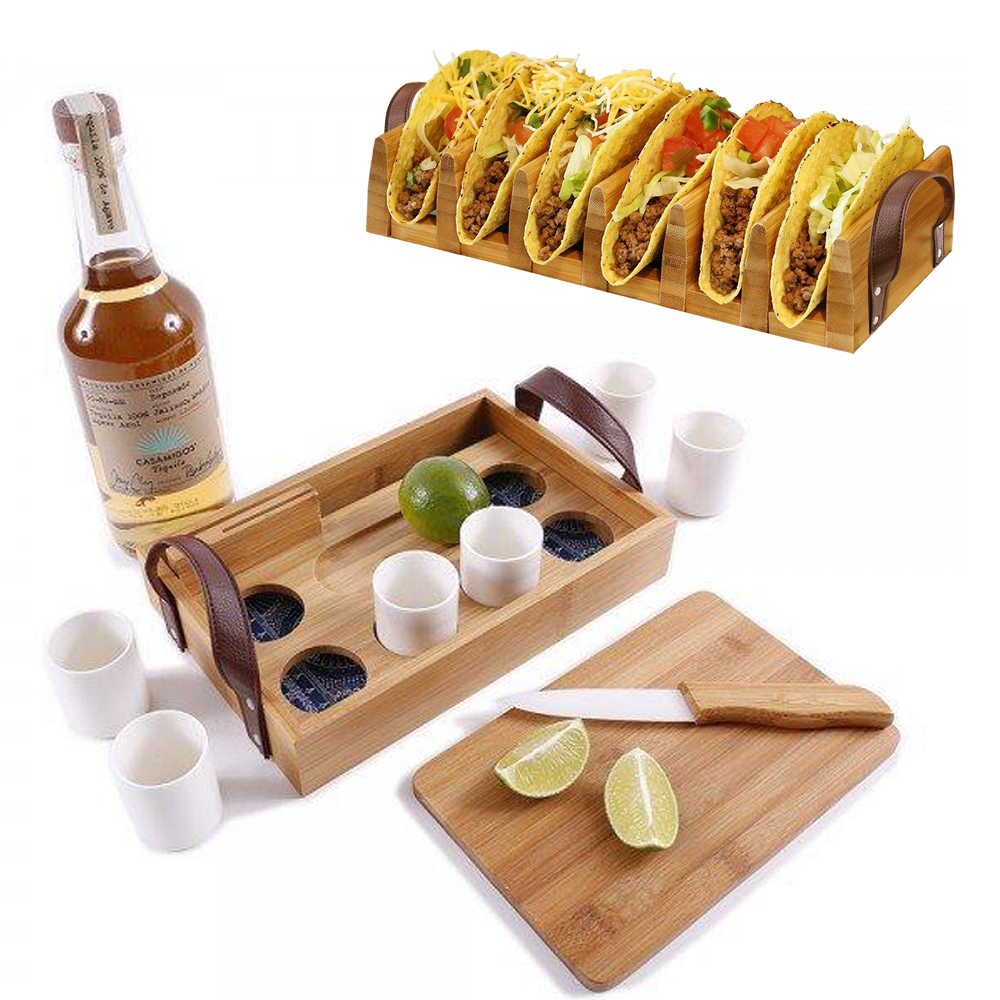 - 3 Piece Set -- Our Fiesta Collection features our Bamboo Tequila Tasting Set, our Bamboo Taco Tray, and our Bandana Tortilla Warmer. Each individual item adds a little bit of luxury to your home kitchen, but the set will be sure to spice up every dining experience.